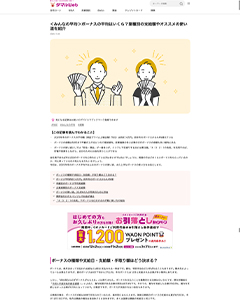 弊社代表 頼藤太希の記事「<みんなの平均>ボーナスの平均はいくら?業種別の支給額やオススメの使い道を紹介」が掲載されました。(頼藤太希)