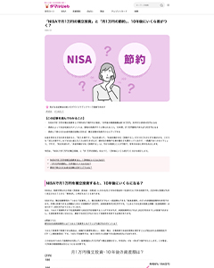 弊社取締役 高山一恵の記事「「NISAで月1万円の積立投資」と「月1万円の節約」、10年後にいくら差がつく?」が掲載されました。(高山一恵)